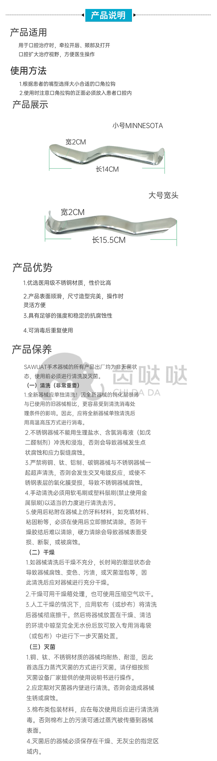 萨乌特国际/SAWUAT 口角拉钩/唇颊拉钩