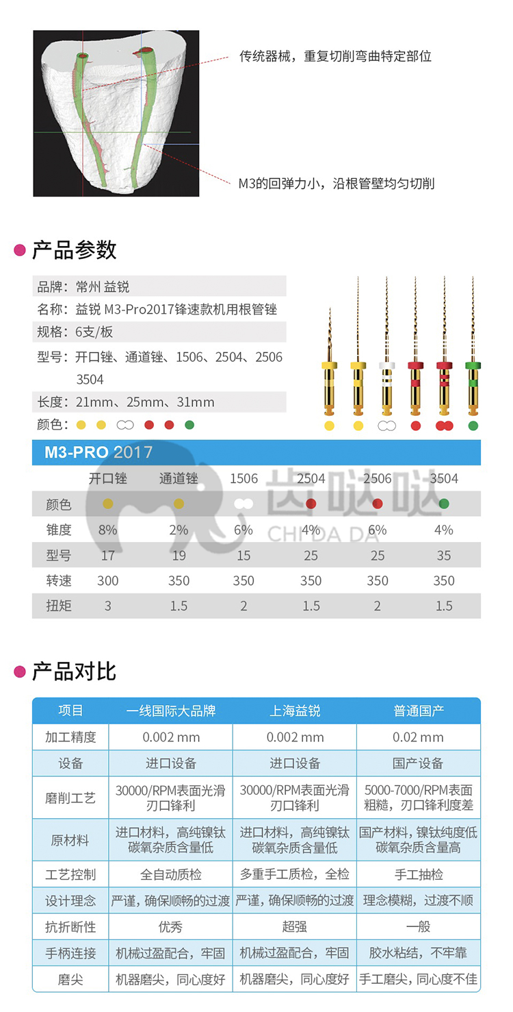 益锐 M3-Pro2017锋速款机用根管锉 6支/板 (25mm)