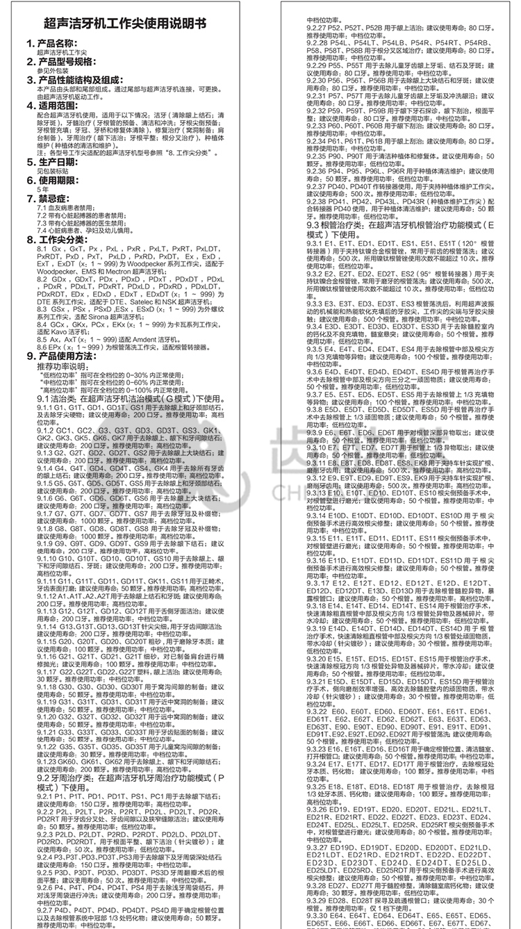 啄木鸟 超声洁牙机工作尖(牙周治疗P系列)5支/板