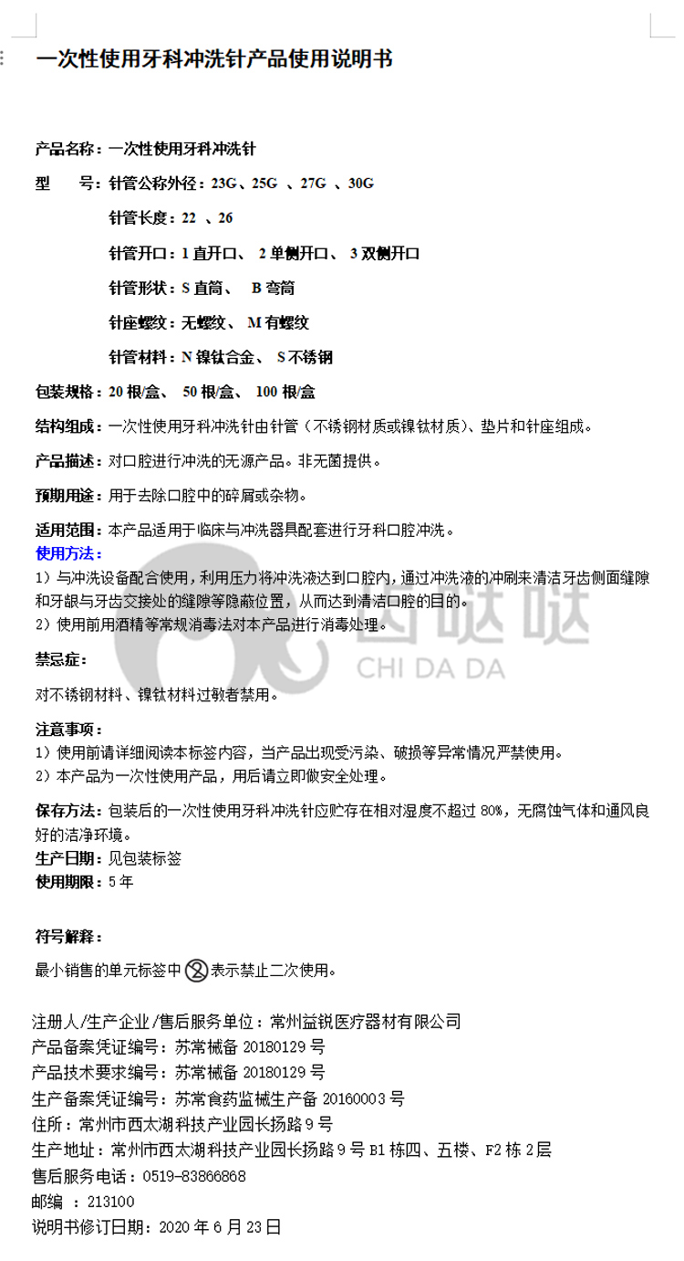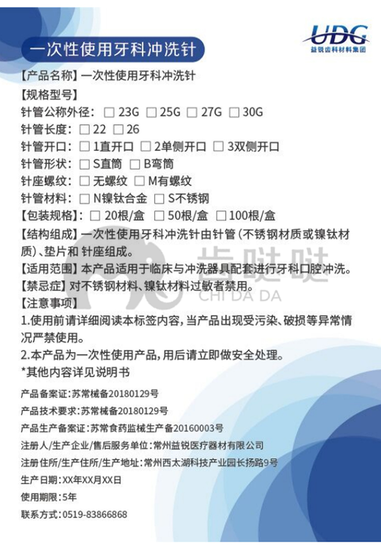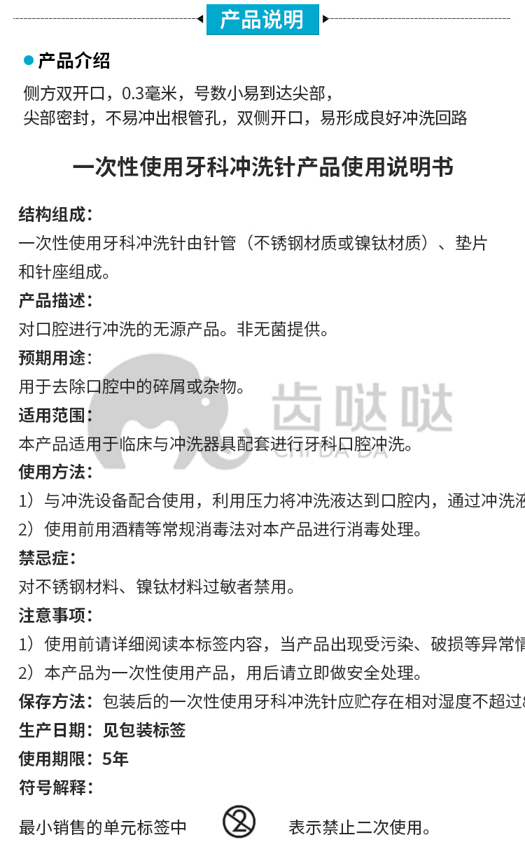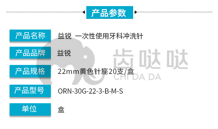 益锐 一次性使用牙科冲洗针/不锈钢侧方开口冲洗针头 22mm
