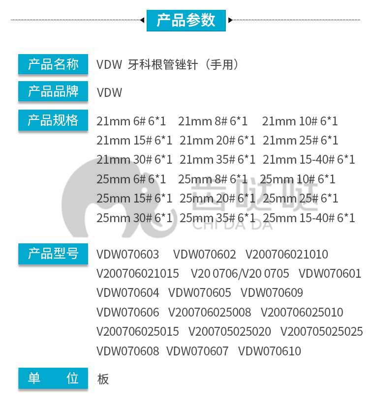 VDW 牙科根管锉针手用/K型锉 21mm