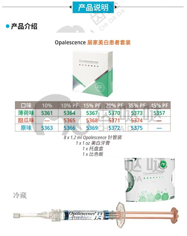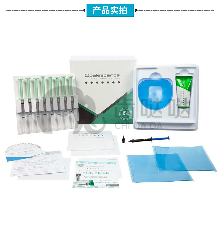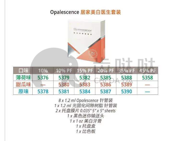 医生套装 薄荷味 (美白胶1.2ml*8支;代型材料1.2ml*1支;0.035 5"x5"软牙托盘膜片*2张;1oz美白牙膏*1支;牙托盒*1个;美白比色板*1个) 5382