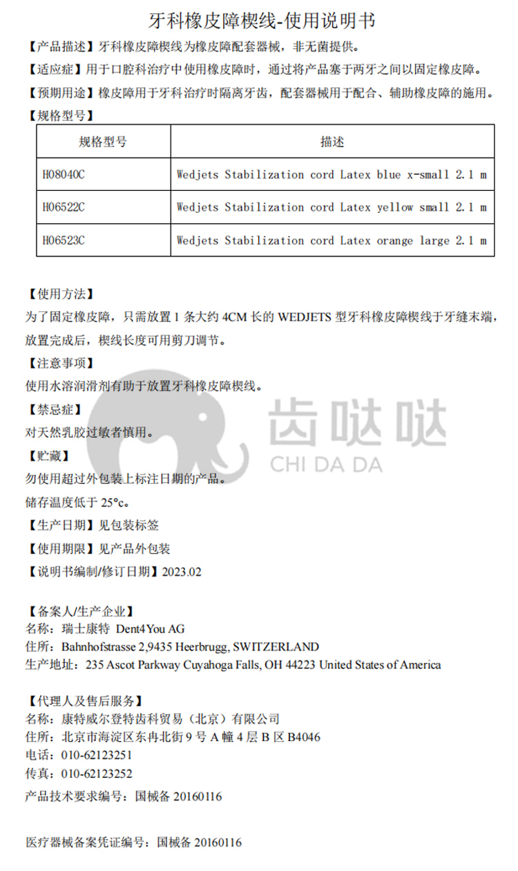 康特 牙科橡皮障楔线