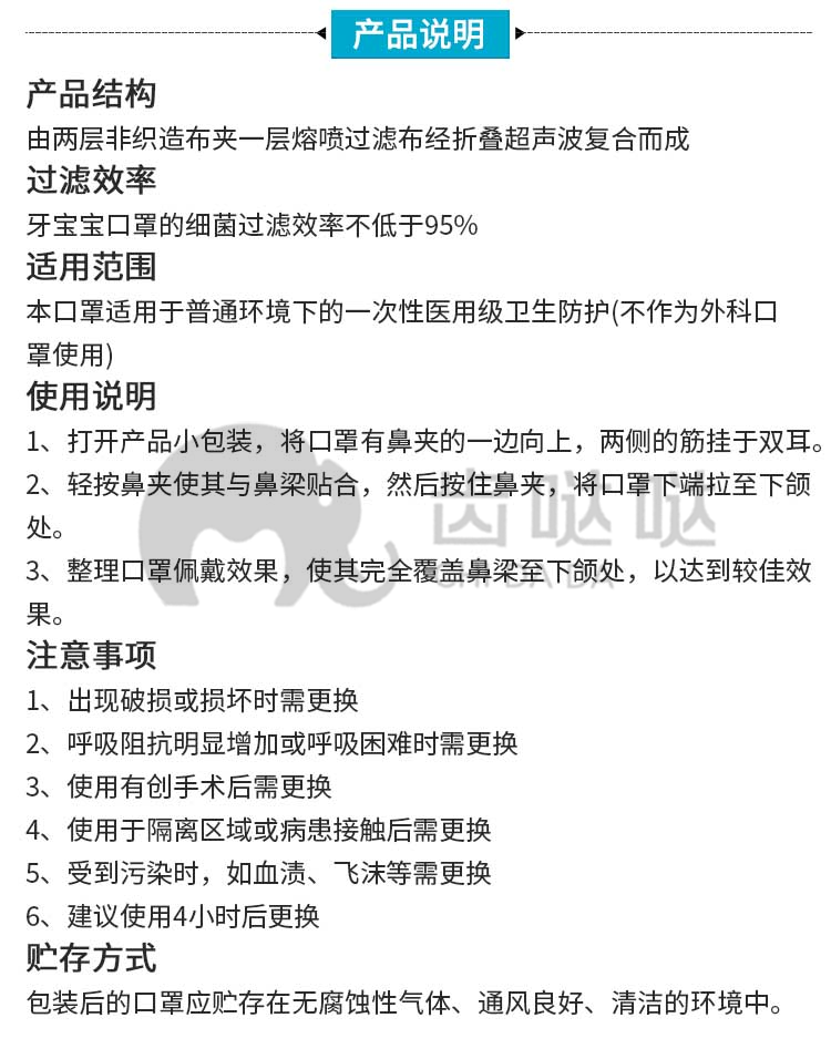 牙宝宝 医用外科口罩 成人平面耳挂式