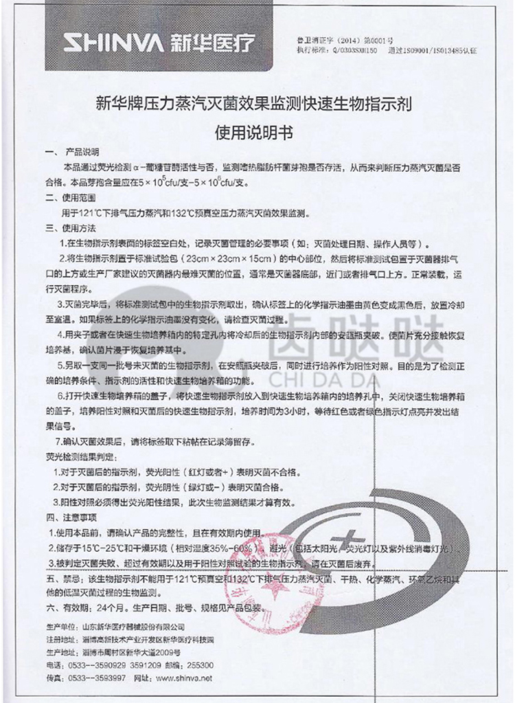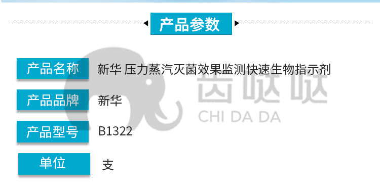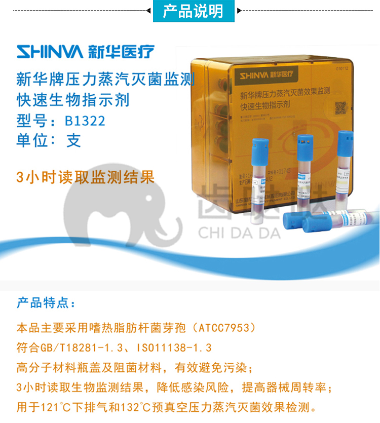 新华 压力蒸汽灭菌效果监测快速生物指示剂B1322