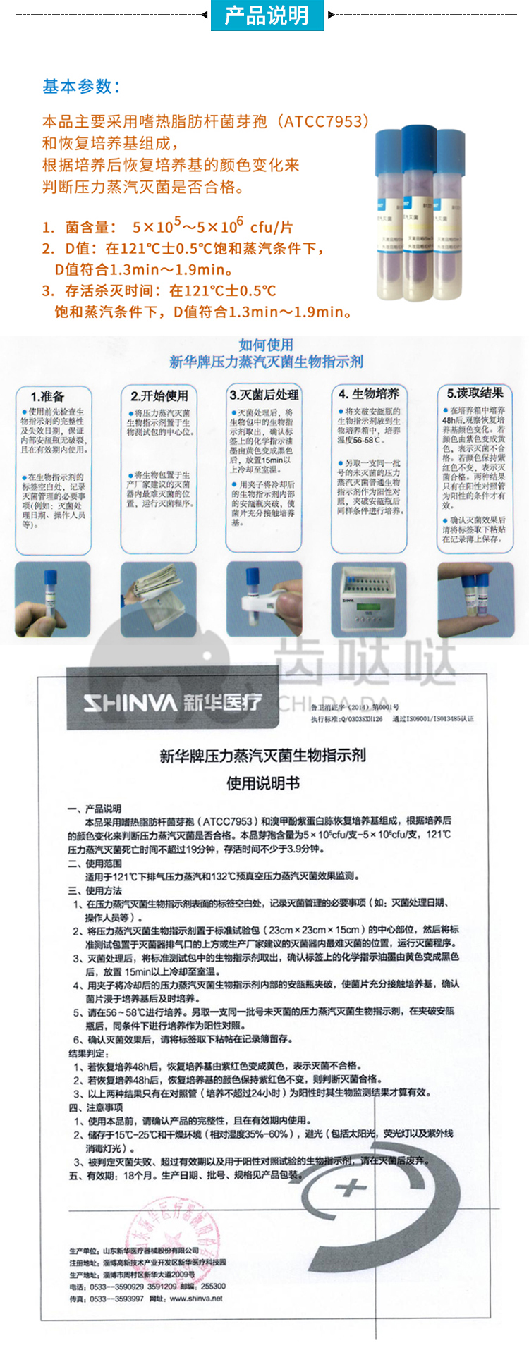 新华 压力蒸汽灭菌生物指示剂(口腔专用)B1321-K