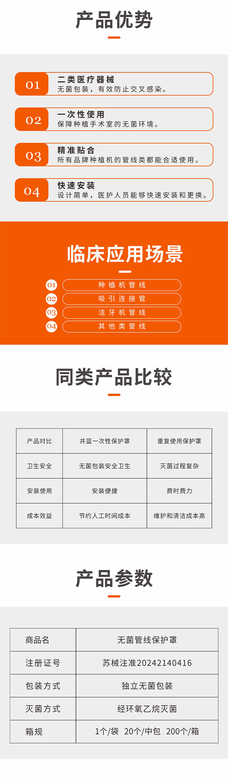 井蓝 一次性无菌保护罩/种植机线管保护套/马达线管套/管巾/管套