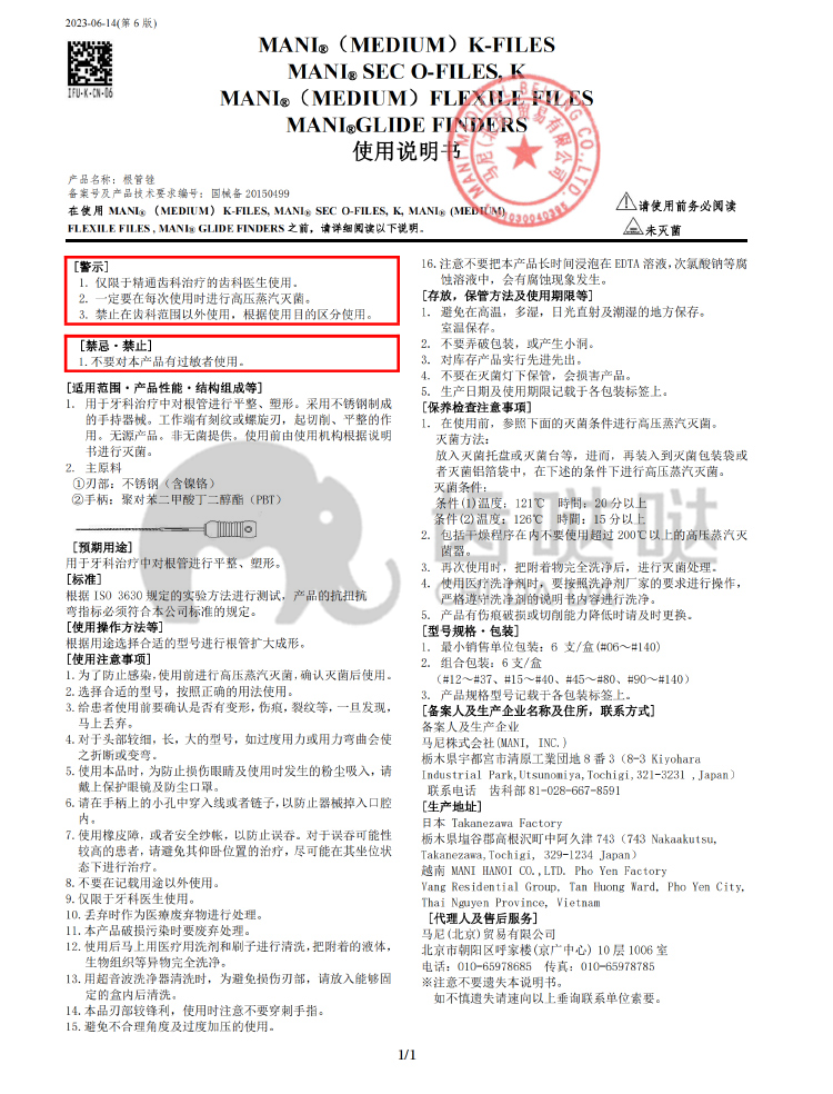 马尼 根管锉 H锉(6支/盒) 25mm