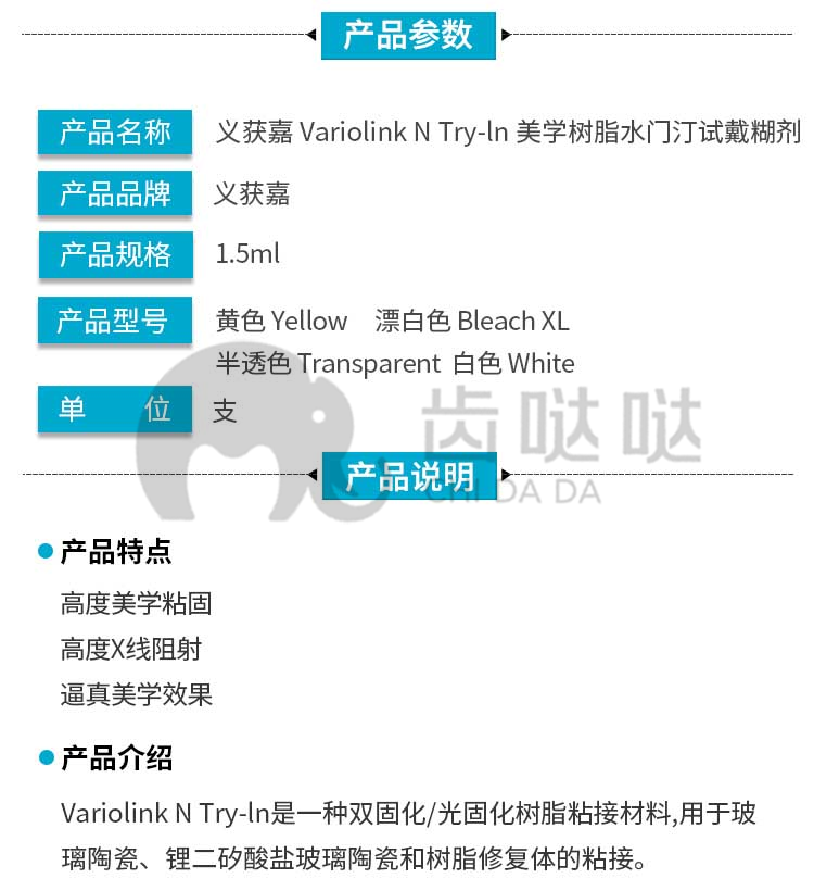 义获嘉 试色糊剂/Variolink N Try-ln 美学树脂水门汀试戴糊剂