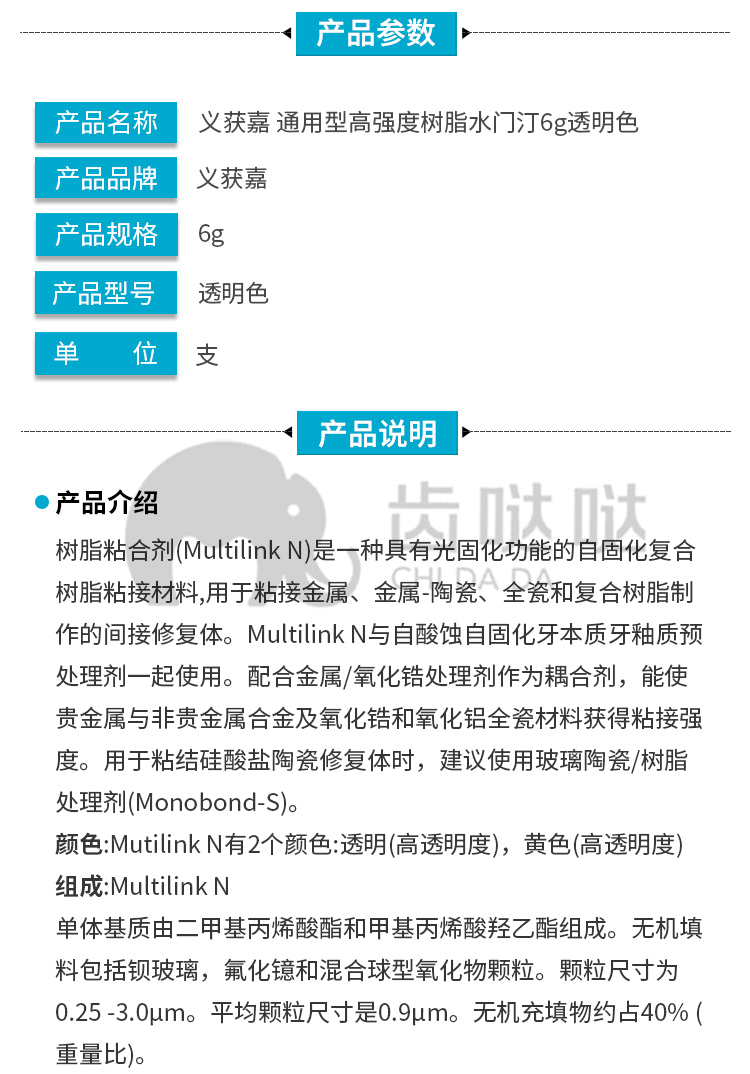 义获嘉 树脂粘合剂套装/Multilink N 通用型高强度树脂水门汀透明色