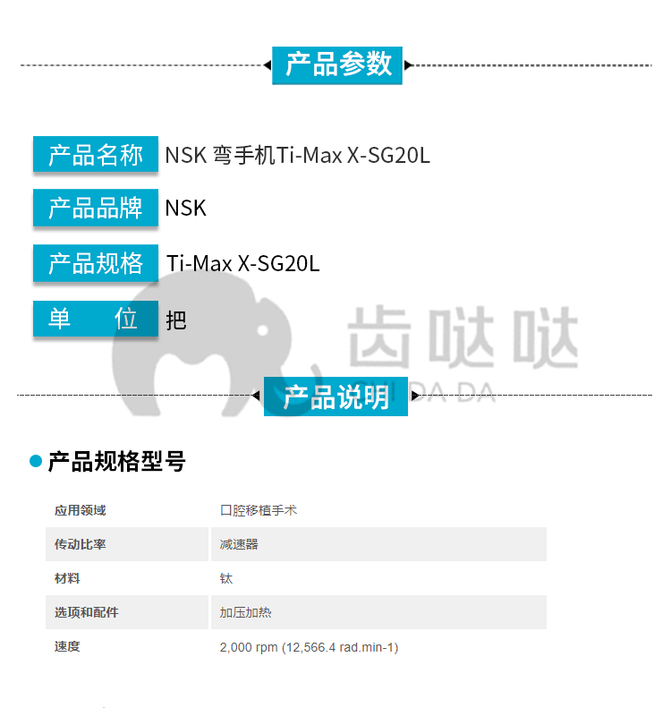 NSK 弯手机 种植手机 带灯Ti-Max X-SG20L