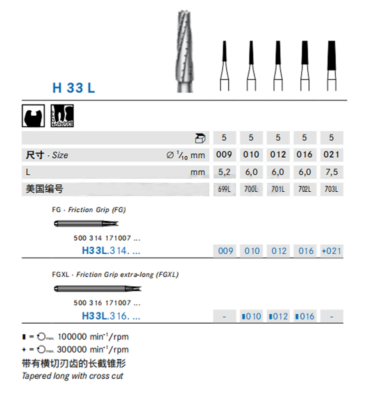 固美 钨钢锥形车针/分牙/拔阻生牙车针 (含超长)
