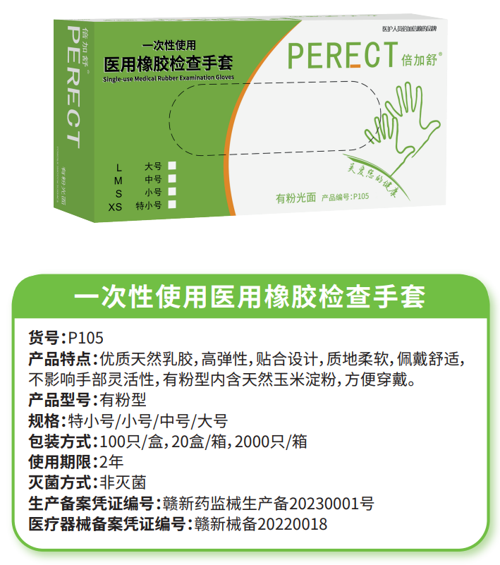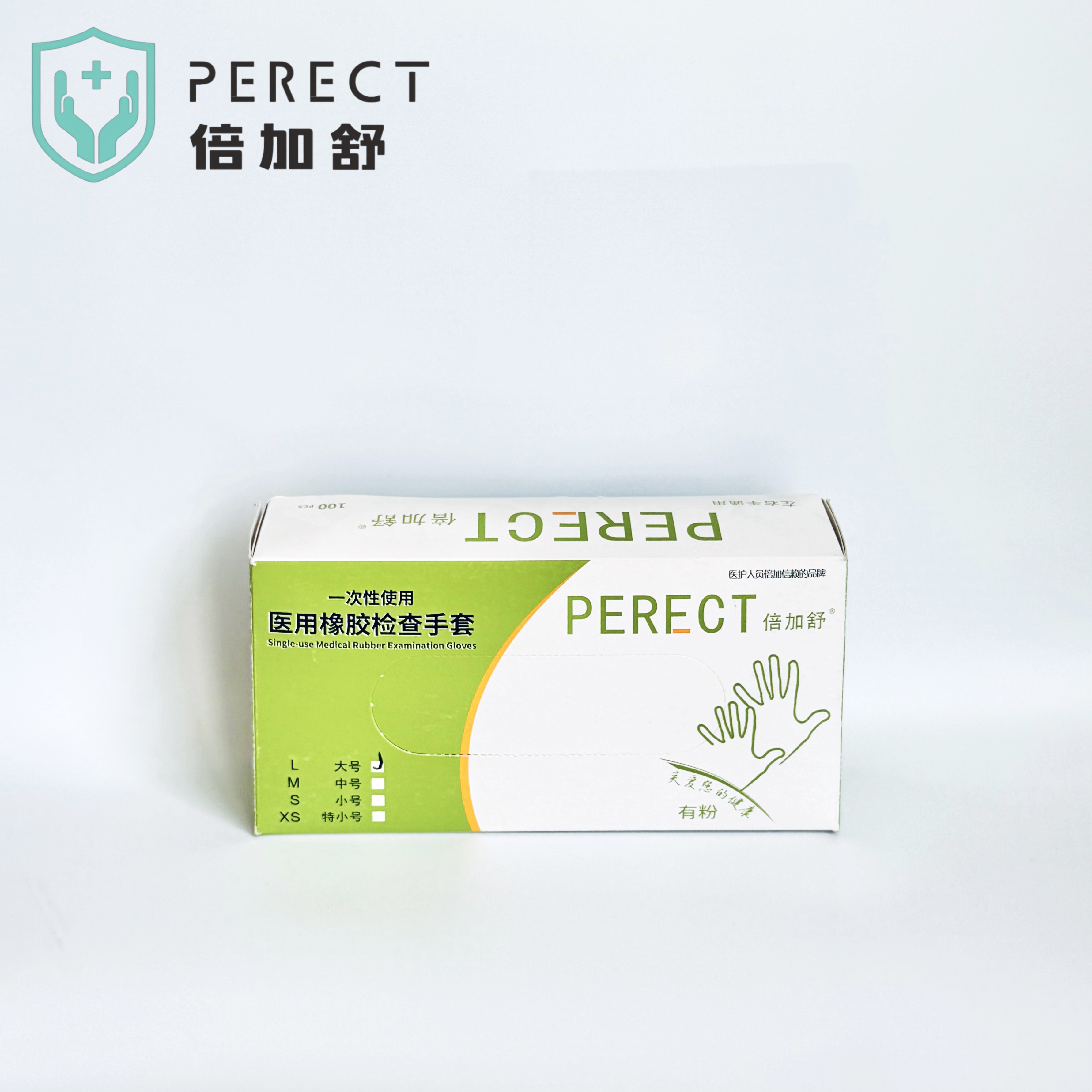 倍加舒 一次性使用医用橡胶检查手套 有粉光面100只/盒P105