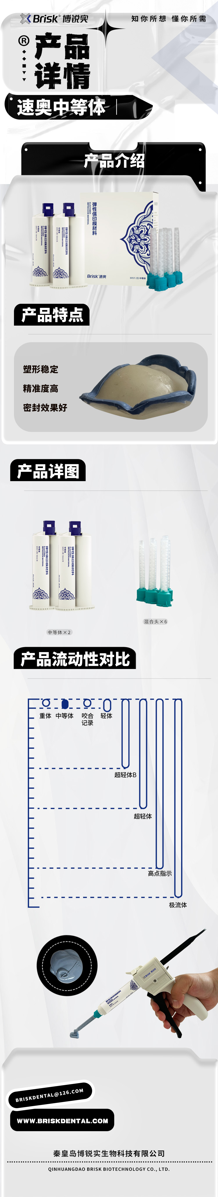 博锐实Brisk 弹性体印模材料 速奥中等体 BRST-2型50ml×2支