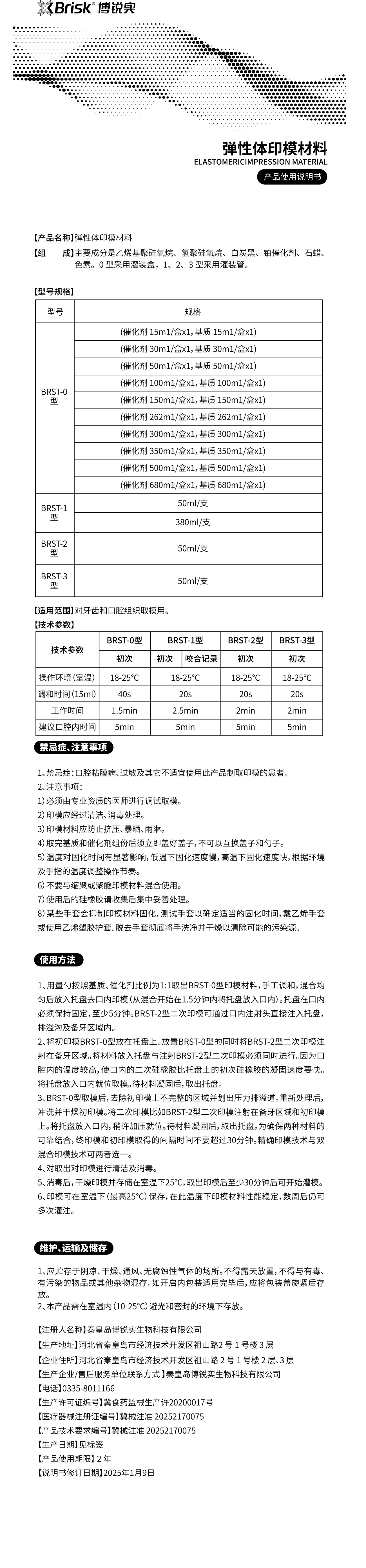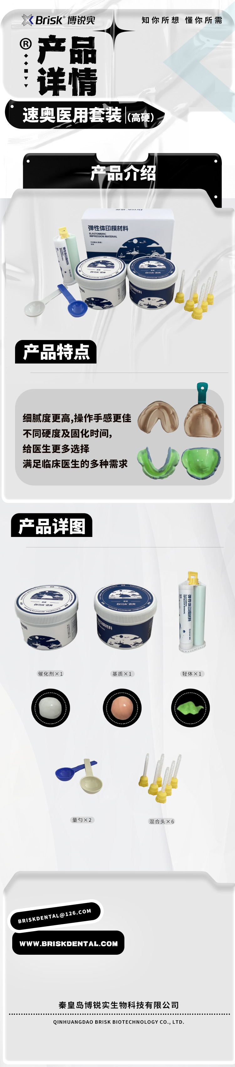 博锐实Brisk 硅橡胶印模材料医用套装(速奥高硬) 0型重体+3型轻体