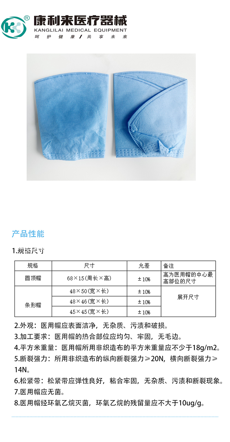 康利来 一次性使用医用帽(无菌 圆顶帽)