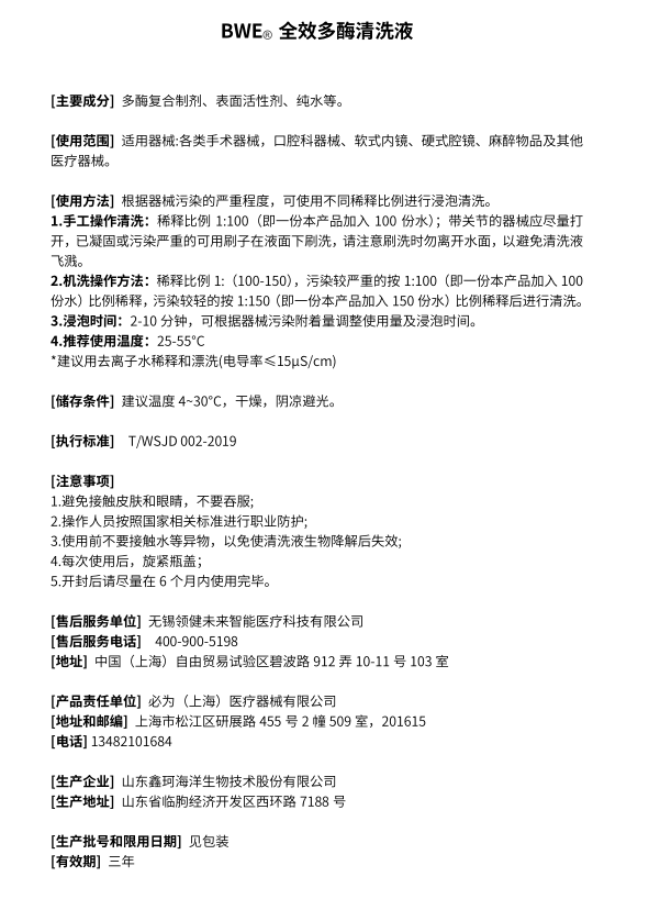 必为/BWE 全效多酶清洗液