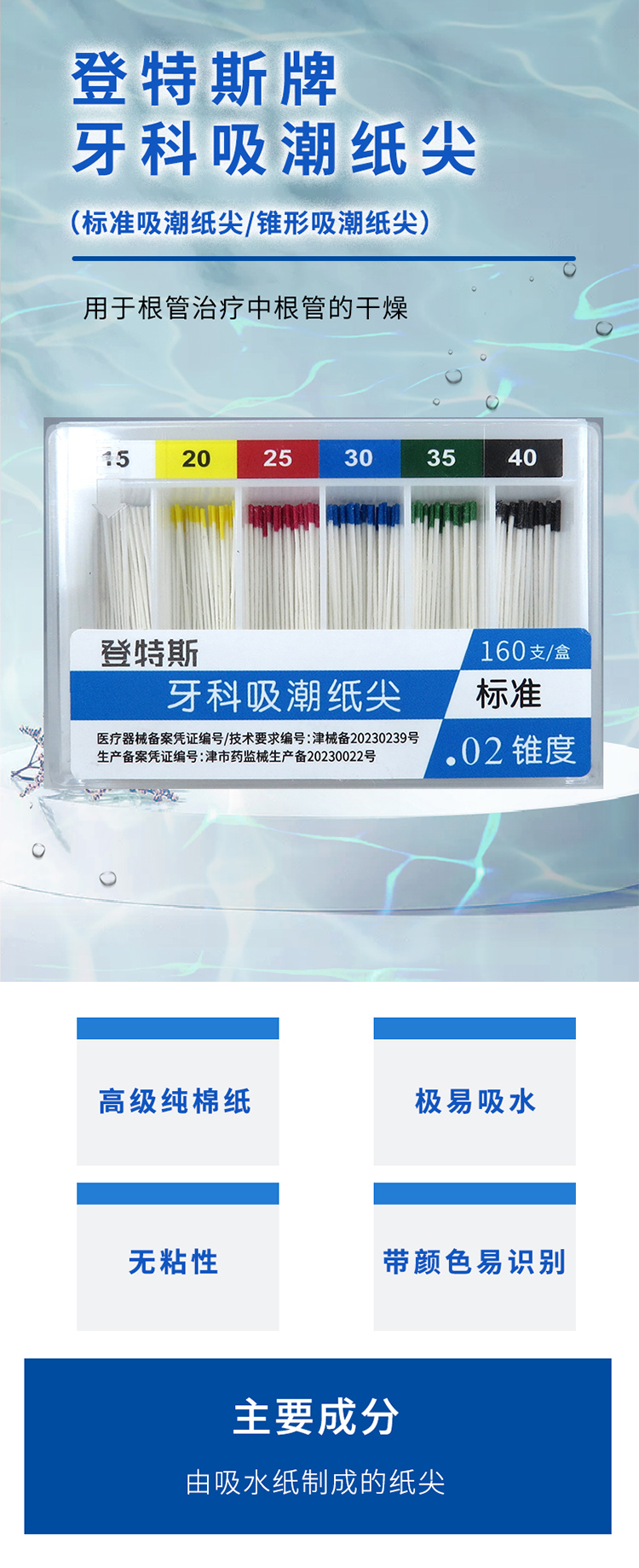 登特斯 吸潮纸尖0.02锥度 标准 160支/盒