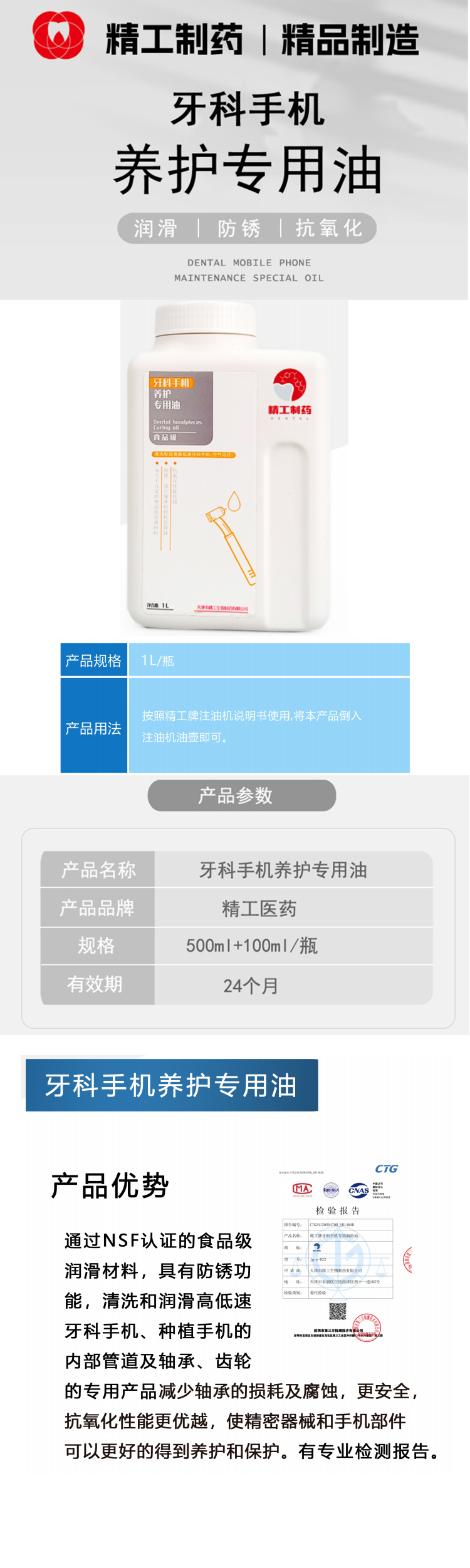 精工/精工制药 牙科手机养护专用油
