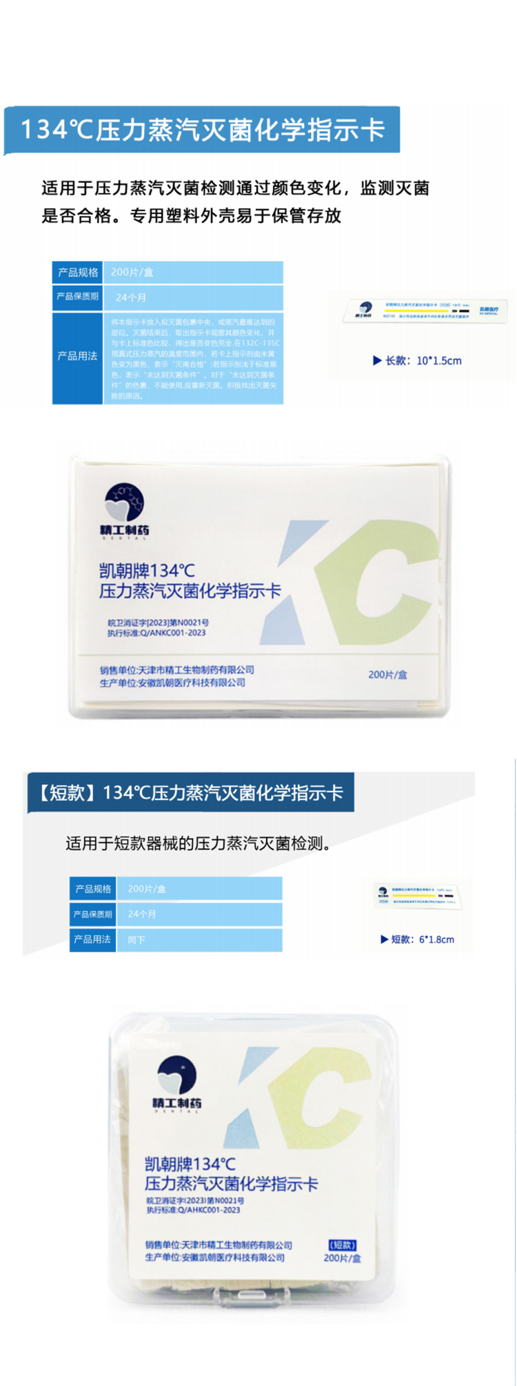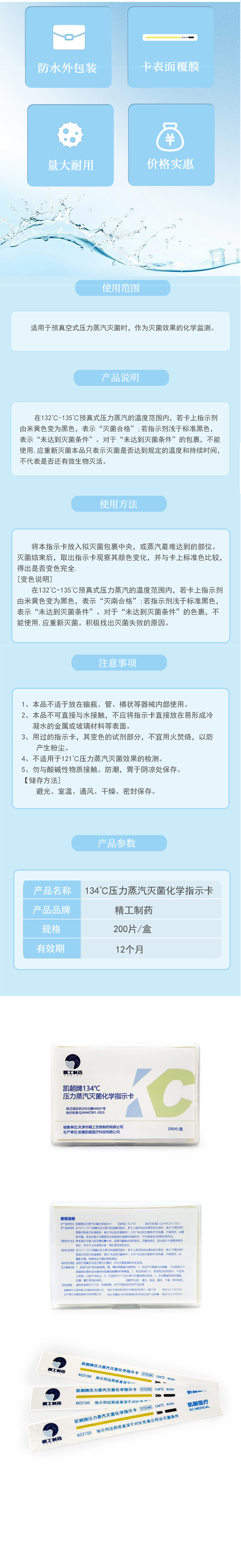 精工/精工制药 凯朝牌 134°压力蒸汽灭菌化学指示卡(PVC防水包装盒)