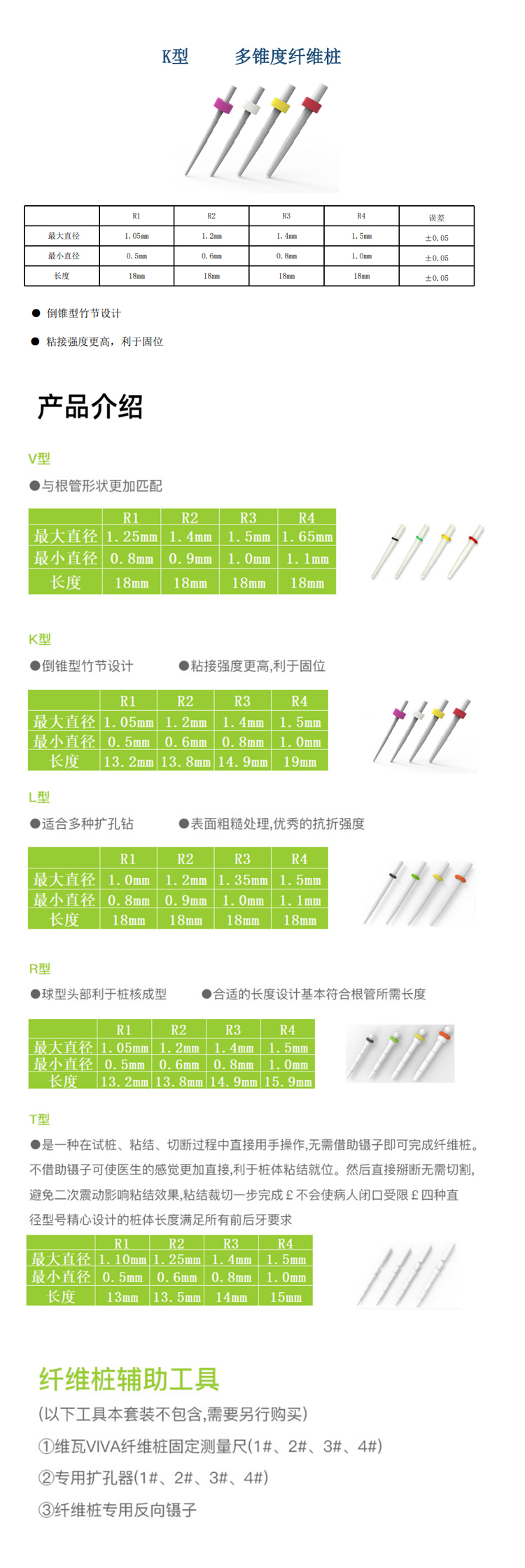 维瓦 玻璃纤维桩 K型多锥度纤维桩 10支/盒