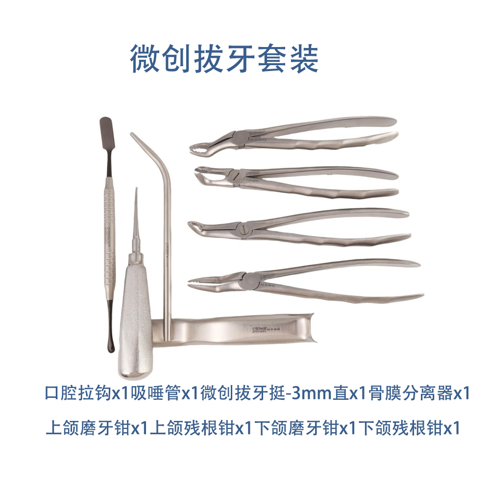 口腔拉钩+吸唾管+微创拔牙挺-3mm直+上颌磨牙钳+上颌残根钳+下颌磨牙钳+下颌残根钳+骨膜分离器-PRICHARD