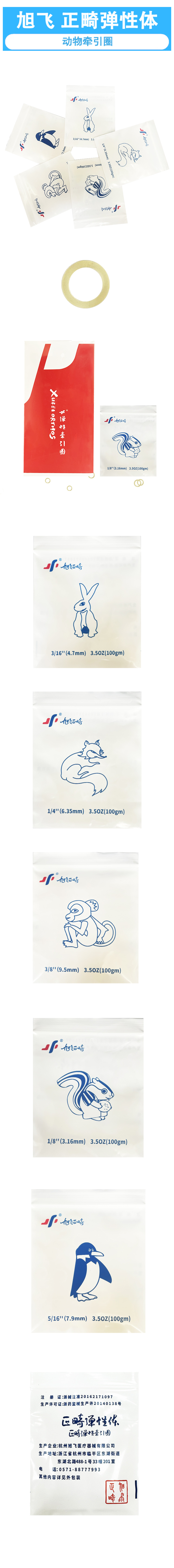 旭飞 正畸弹性体(动物牵引圈) 3.5oz盎司(100个/包 ,50包/盒)