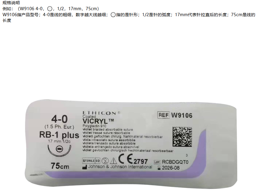 强生/Johnson 合成可吸收性外科缝线 12包/盒