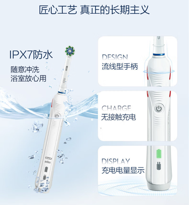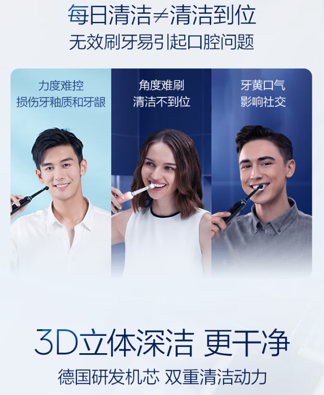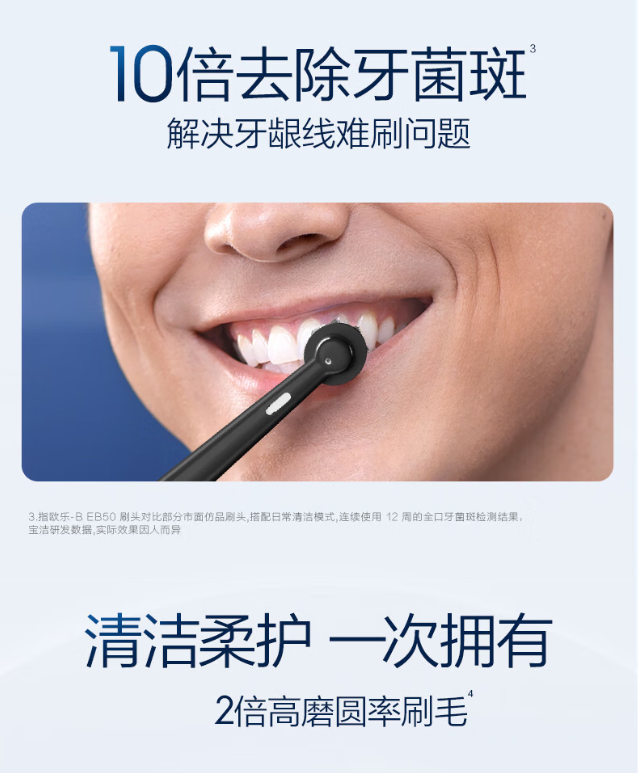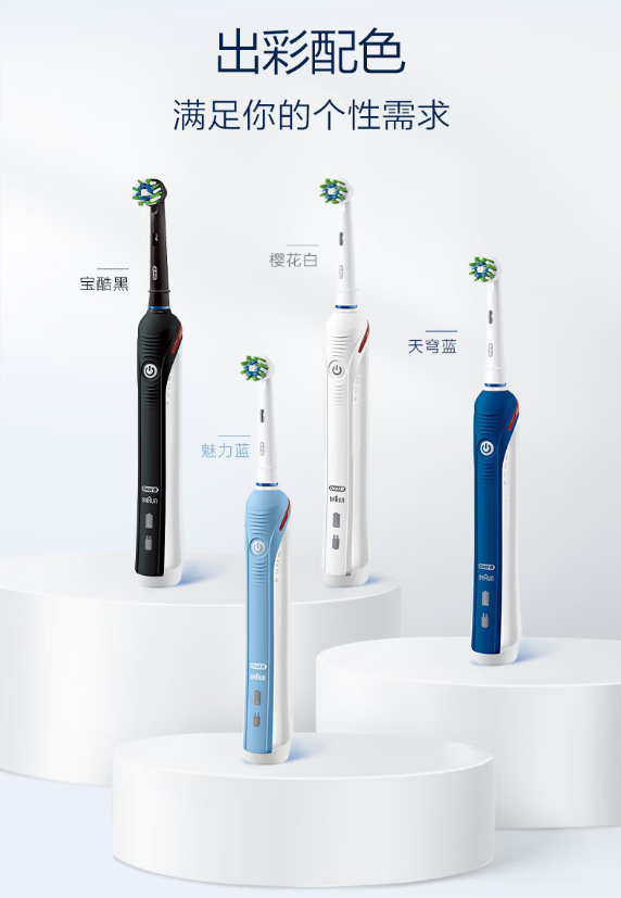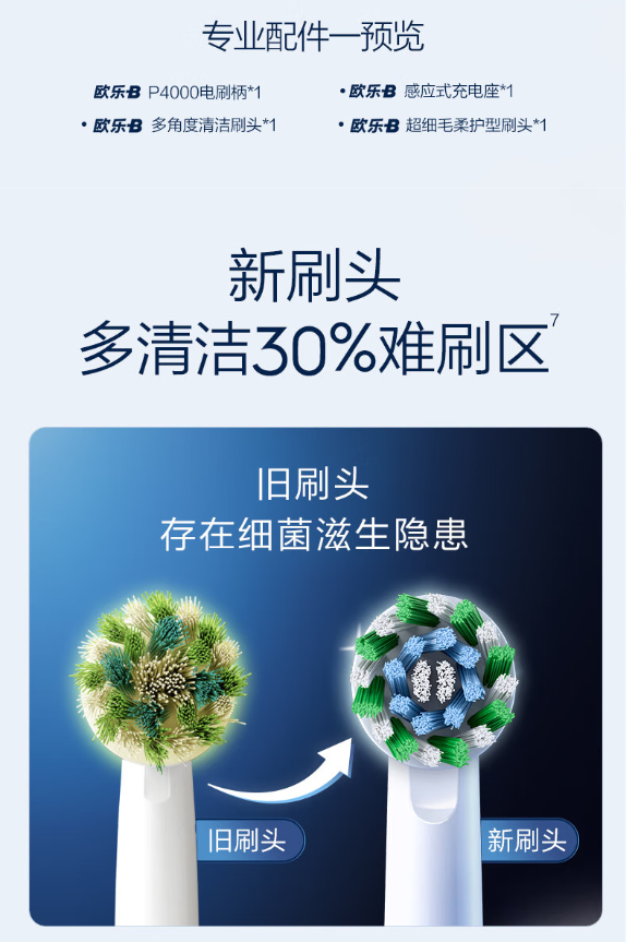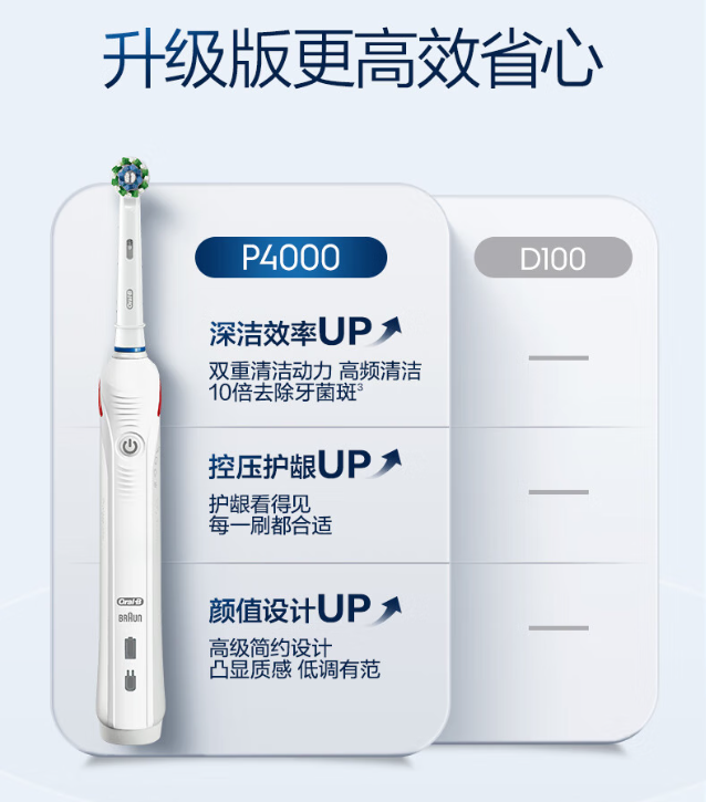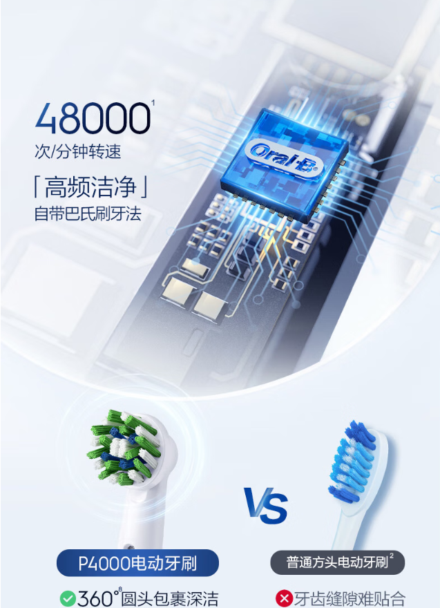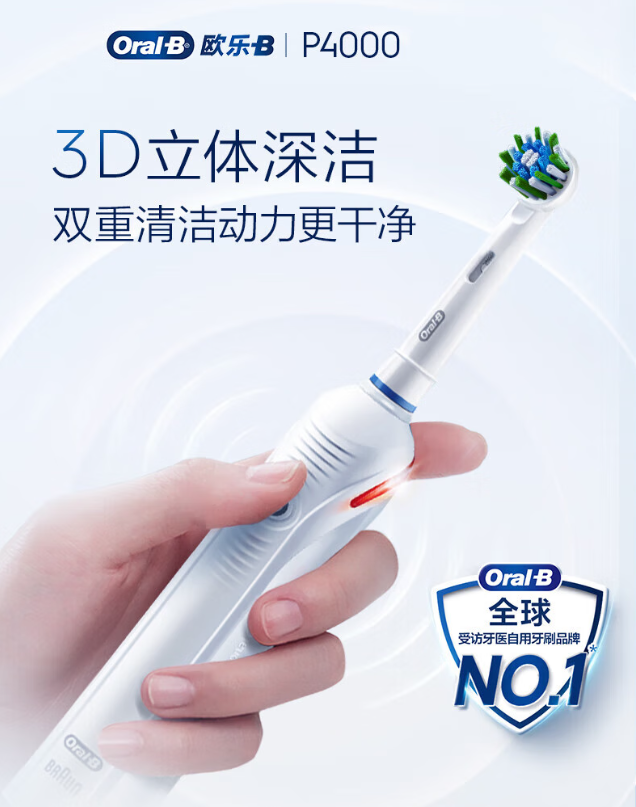 欧乐B 成人电动牙刷P4000深度清洁牙龈按摩3D声波P系列圆头