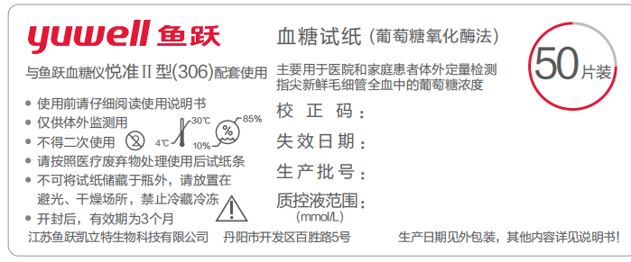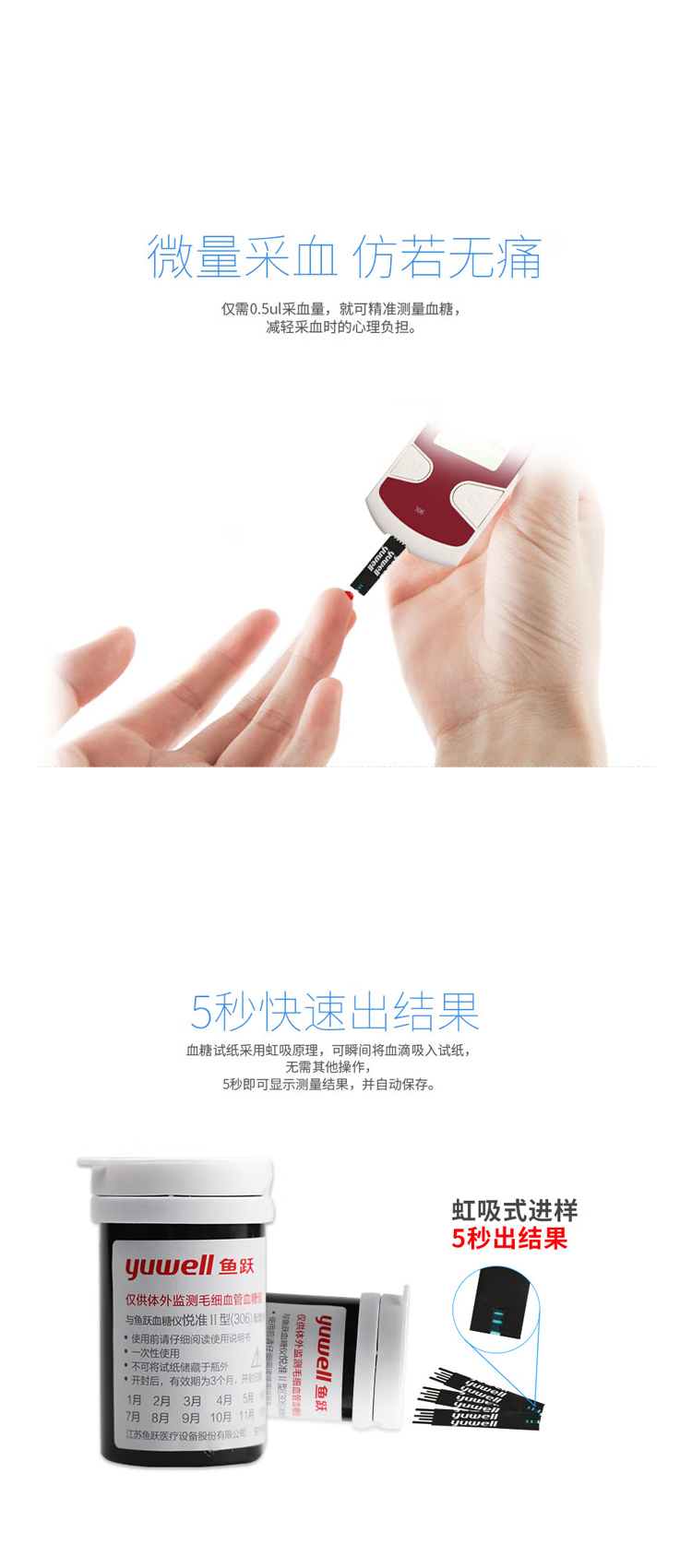 鱼跃/yuwell 血糖试纸(葡萄糖氧化酶法) 适配悦准II型306血糖仪