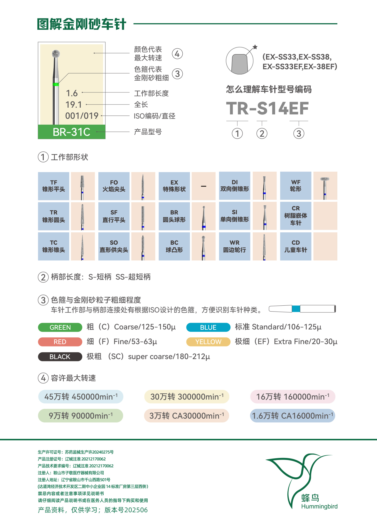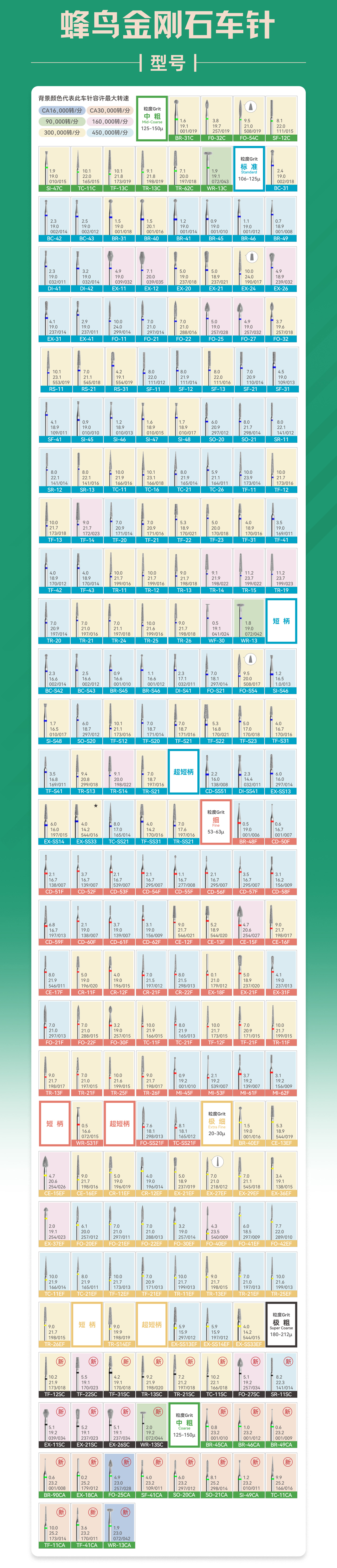 牙米蜂鸟 牙科用金刚石车针 超细砂5支/板
