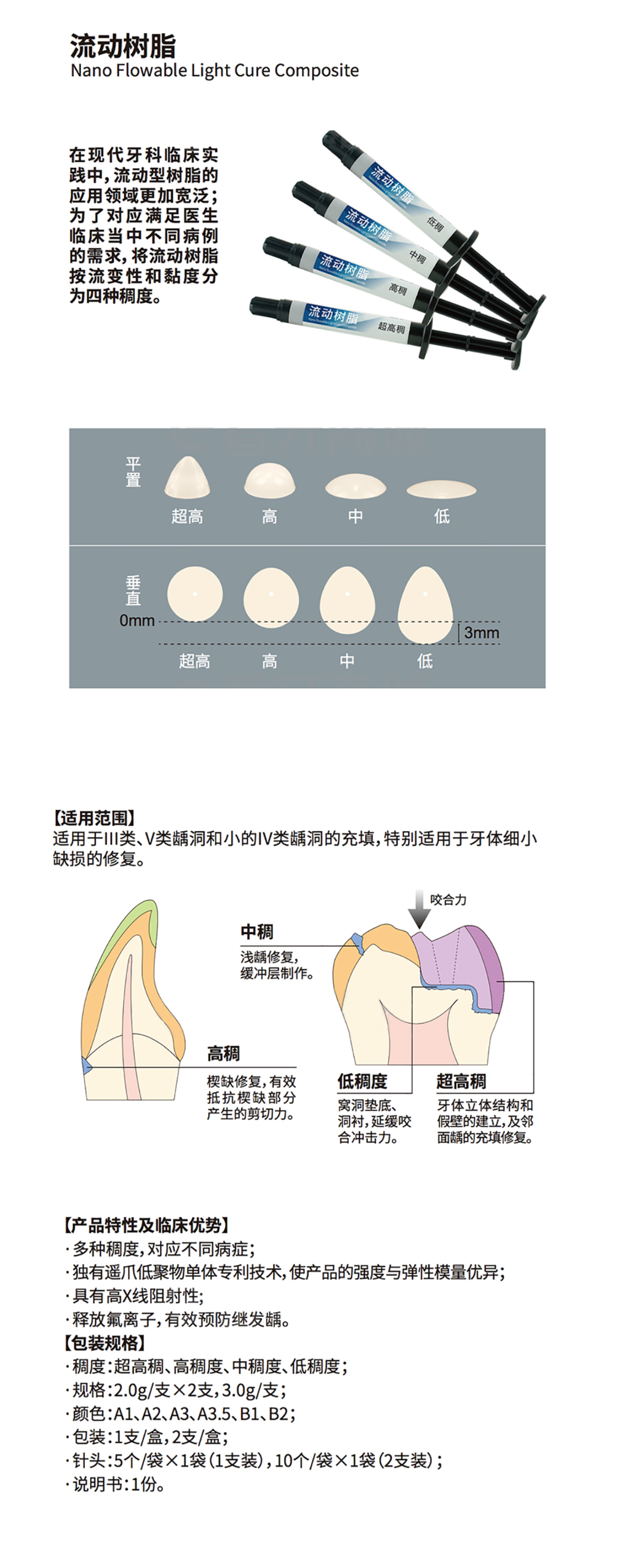 登泰克 中稠度流动树脂/流体树脂 2*2g/支/盒