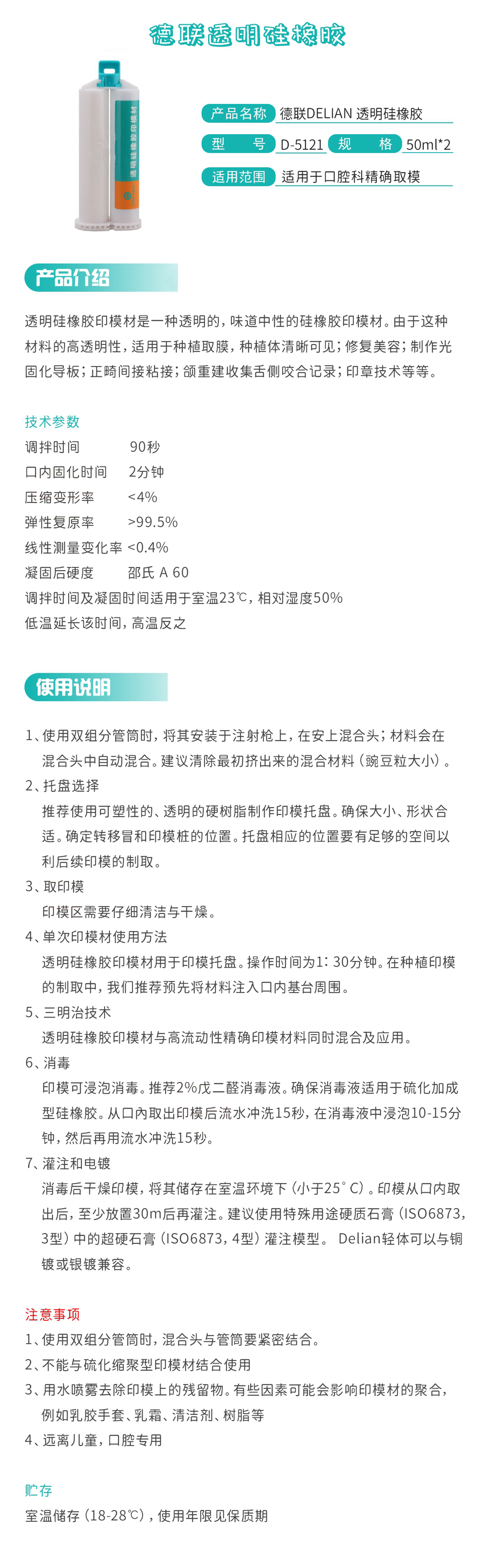 德联DELIAN 透明硅橡胶印模材料