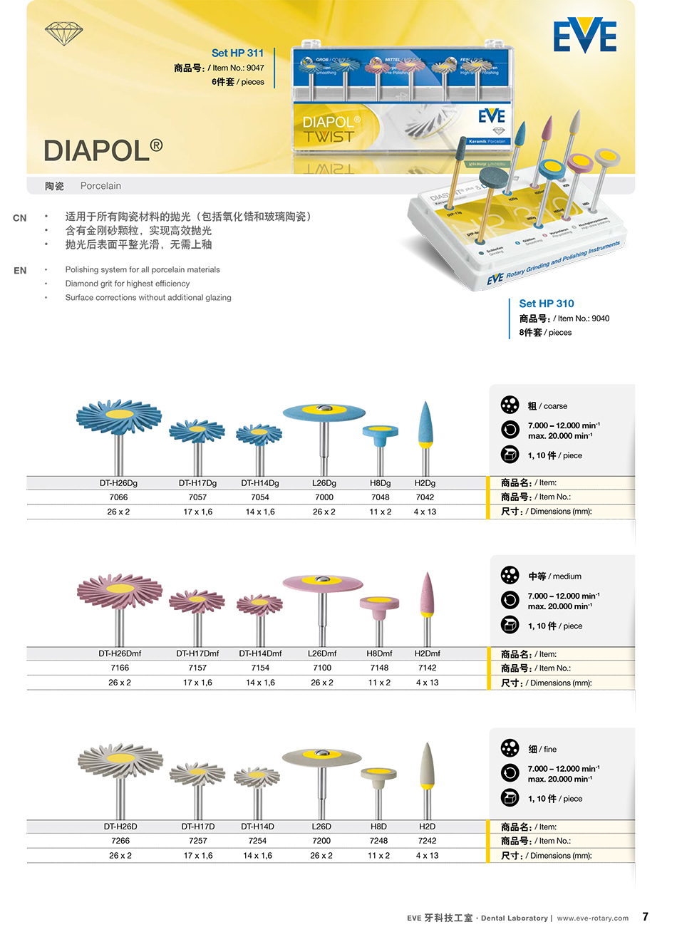 EVE 氧化锆/玻璃陶瓷/烤瓷通用抛光磨头-口外(粗抛光) 补充装