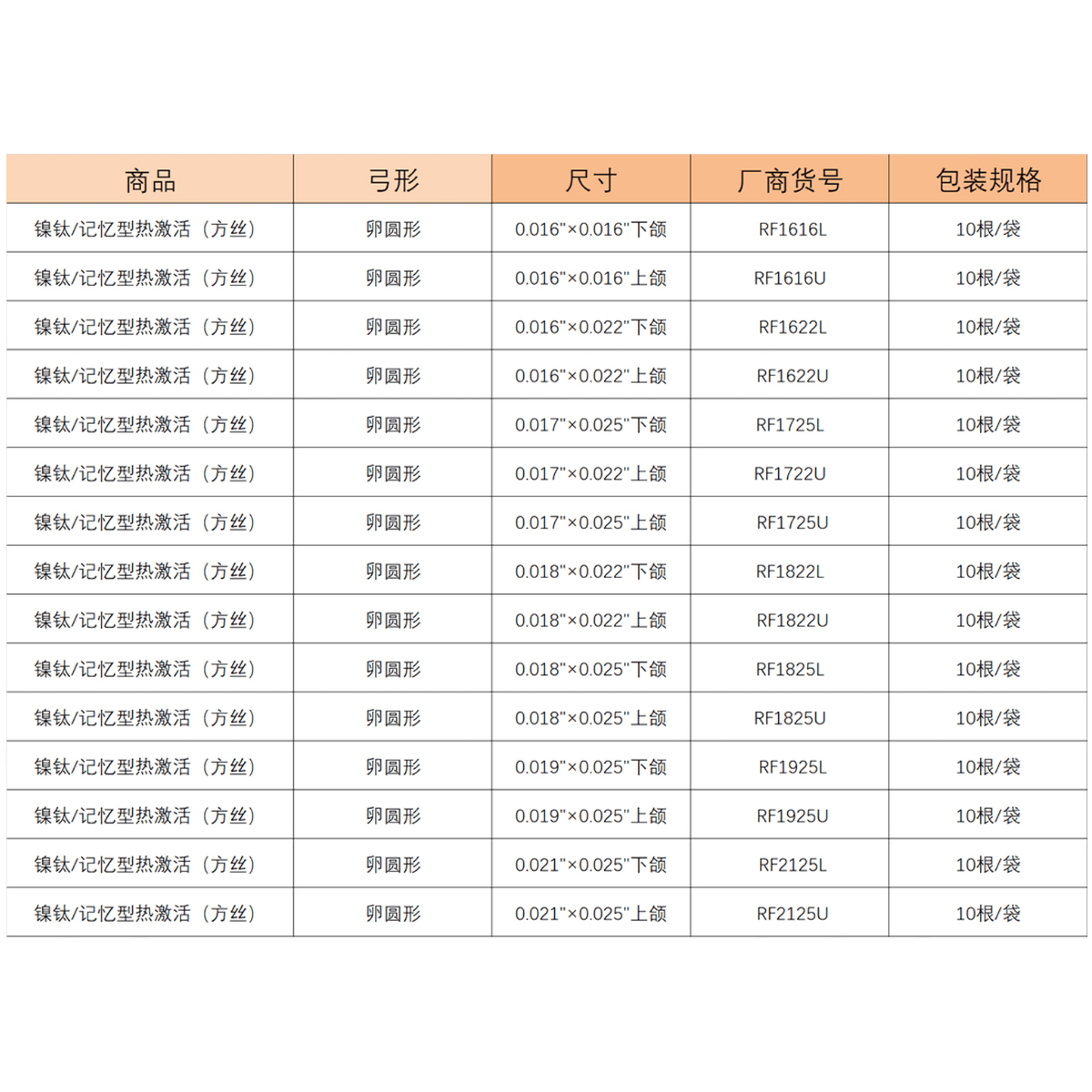 有研 镍钛热激活正畸丝-记忆型牙弓丝(卵圆形)方丝 10根/袋