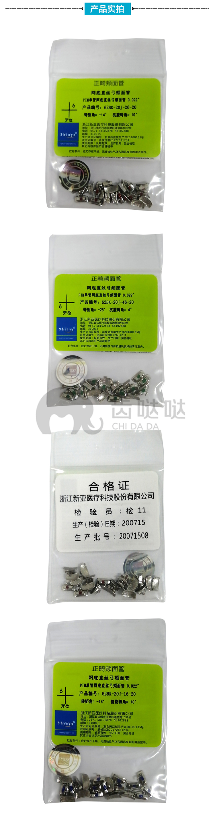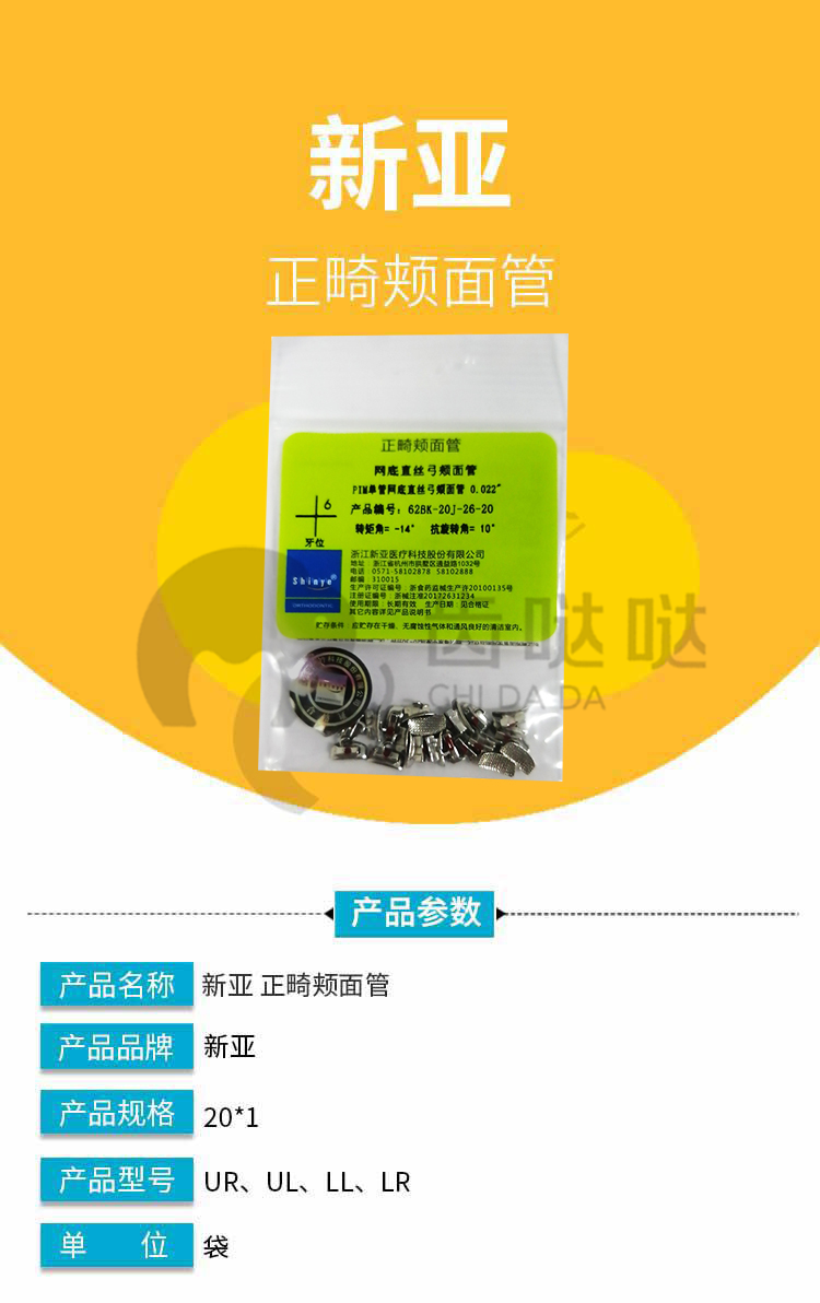 新亚 ROTH系列PIM单管网底直丝弓颊面管 0.022",第一磨牙/6牙位 20粒/袋