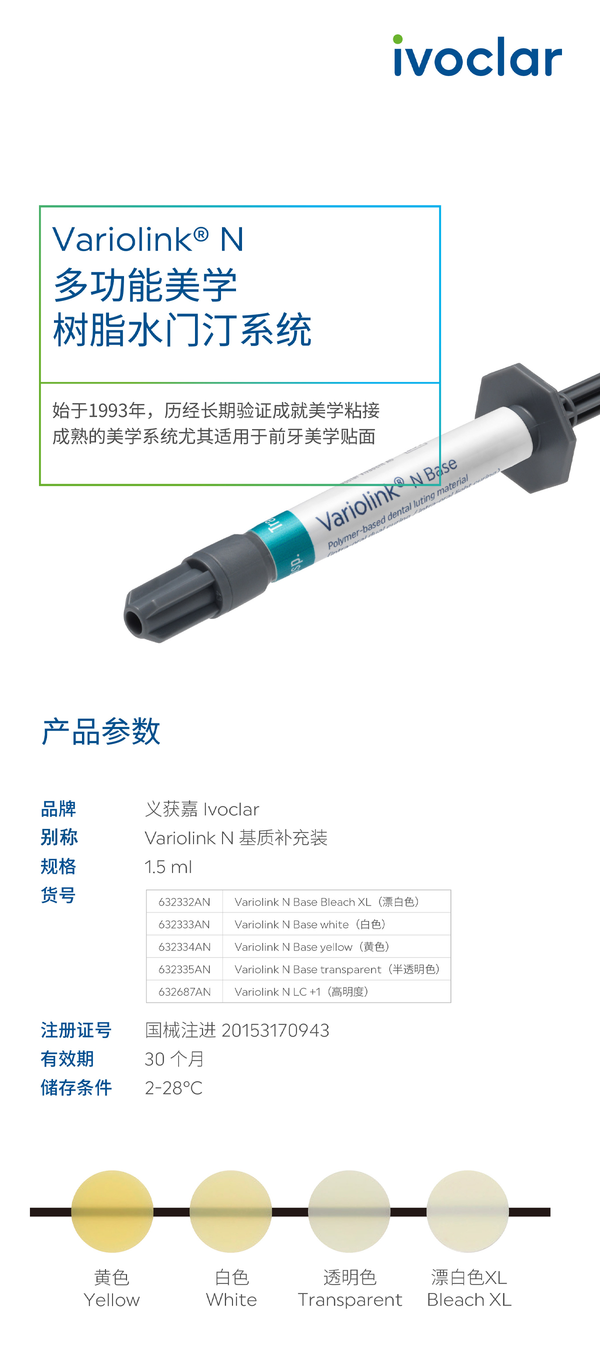 义获嘉 Variolink N Base 多功能美学双固化树脂粘结水门汀基质补充装 / VN基质 1.5ml/支